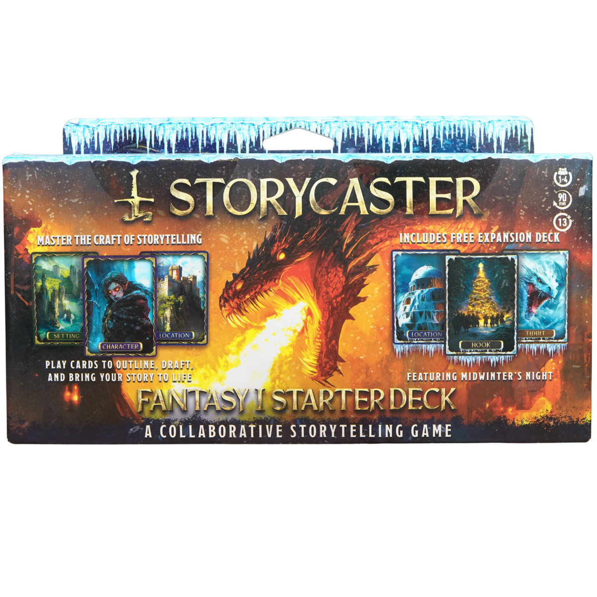 The Storycaster system revolves around the Story Elements. These are the basic building blocks for any great story. The Storycaster gameplay loop takes you through each Story Element with illustrated prompt cards, and randomized question cards, to help you lay the foundations for your campaign, and facilitate further creation.